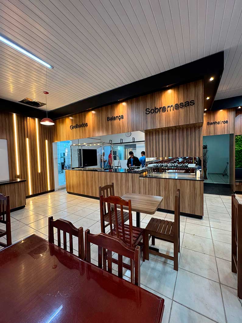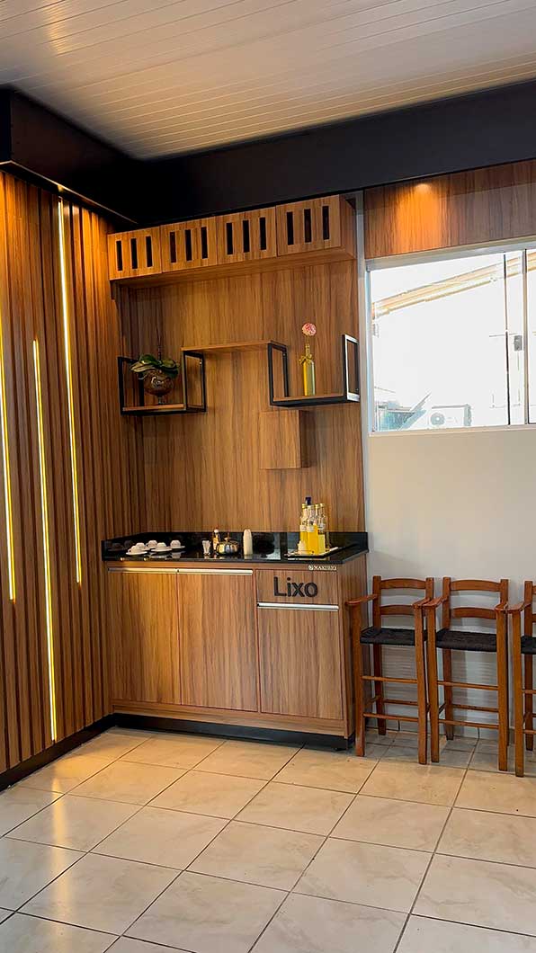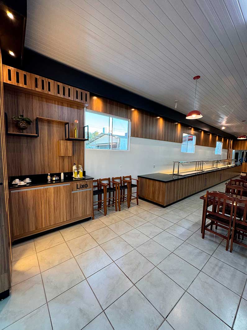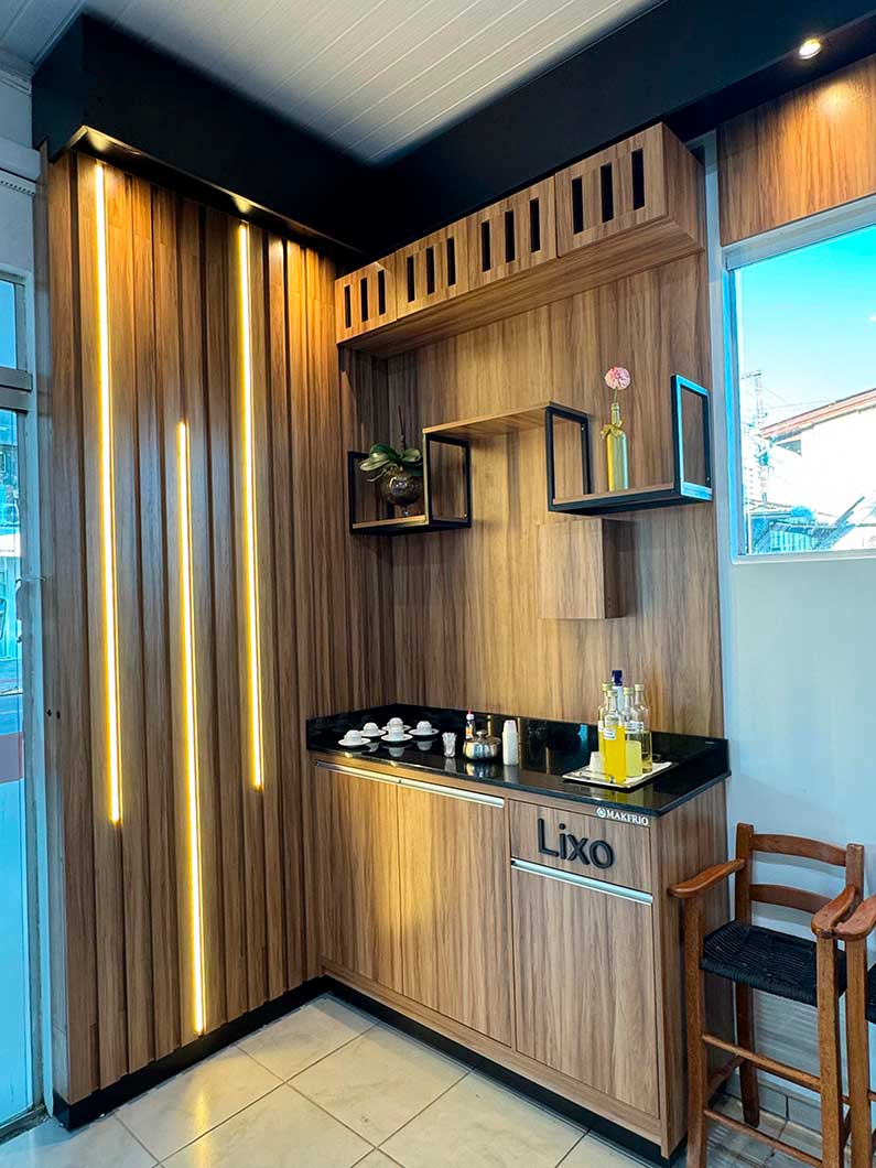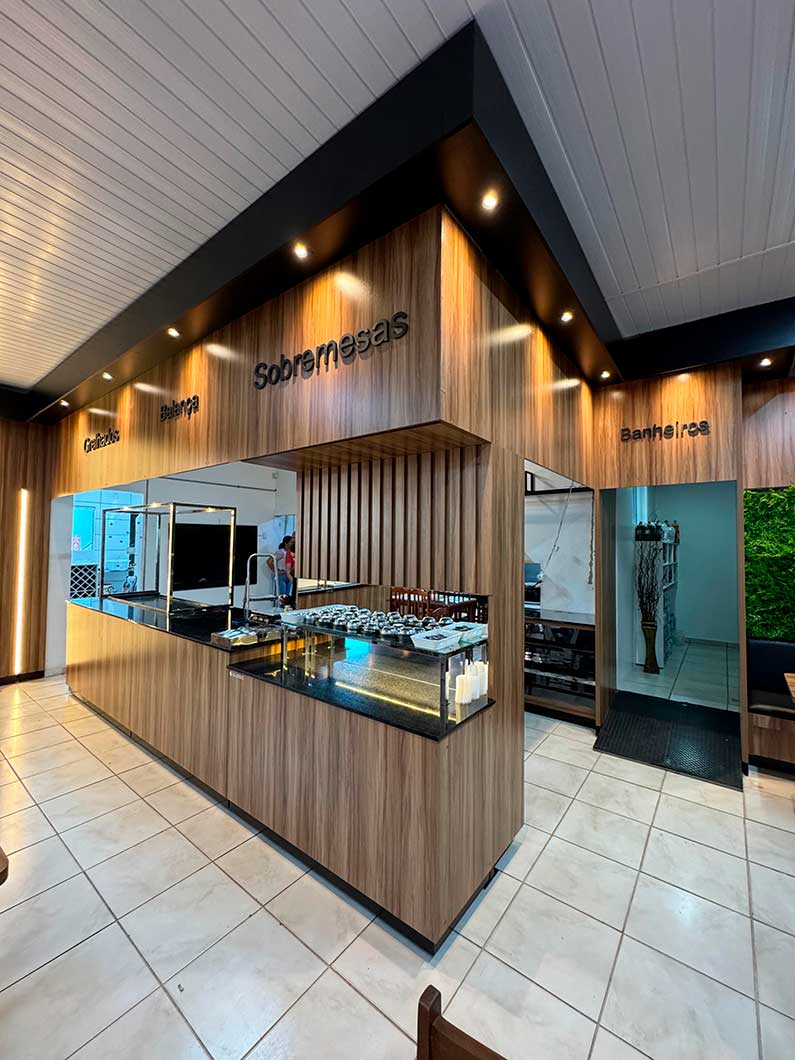 Pensamos em cada detalhe: da área de atendimento ao salão principal, da exposição de bebidas aos balcões de apoio. Tudo é planejado para facilitar o fluxo interno da equipe e proporcionar conforto e praticidade aos clientes.