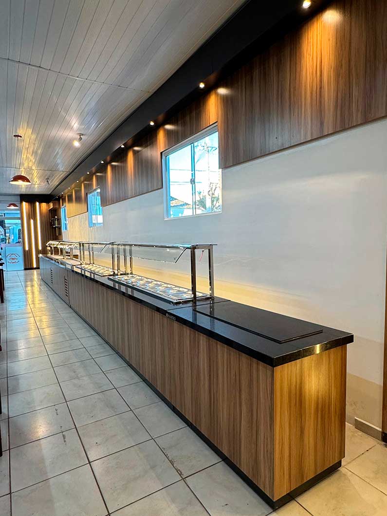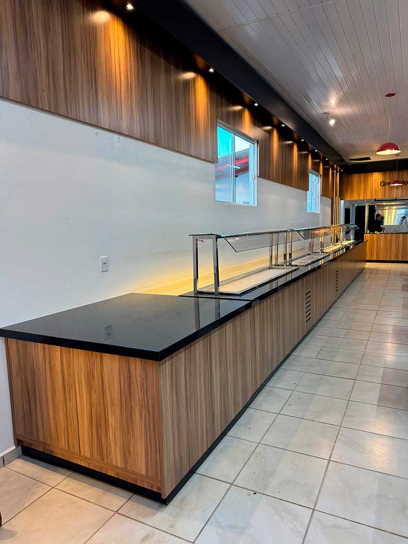 No setor de alimentação, o ambiente é tão importante quanto o cardápio. Restaurantes exigem layout estratégico, mobiliário resistente e refrigeração eficiente para garantir uma operação ágil e uma boa experiência para o cliente.